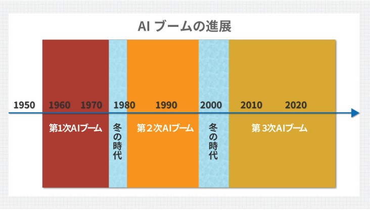 それでは、歴史を少しひもときましょう。ざっくり最初に言ってしまうと、第1次ではAIに将棋とかチェスとかのゲームをやらせていたのです。第2次ではロジック(論理)でAIを動かそうとした。そして第3次の現在では、たくさんのデータを使っている状況です。